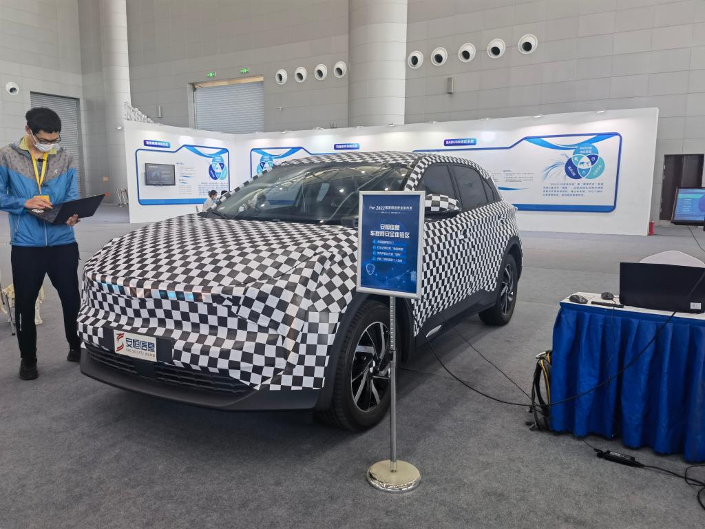 在科普互動區的中心位置停著一輛全身貼滿“馬賽克”的汽車,旁邊放置著一個屏幕。這是杭州安恒信息技術股份有限公司帶來的車聯網安全體驗環節,工作人員操作電腦便在無鑰匙的情況下解鎖了車門,并模擬了行車記錄儀“偷拍”、車內“竊聽”等行為。該公司市場總監李闖告訴記者,他們近年來識別出多種智能汽車安全漏洞,并開展針對性的修補漏洞研究,探索提高車聯網等互聯網新應用的安全性。