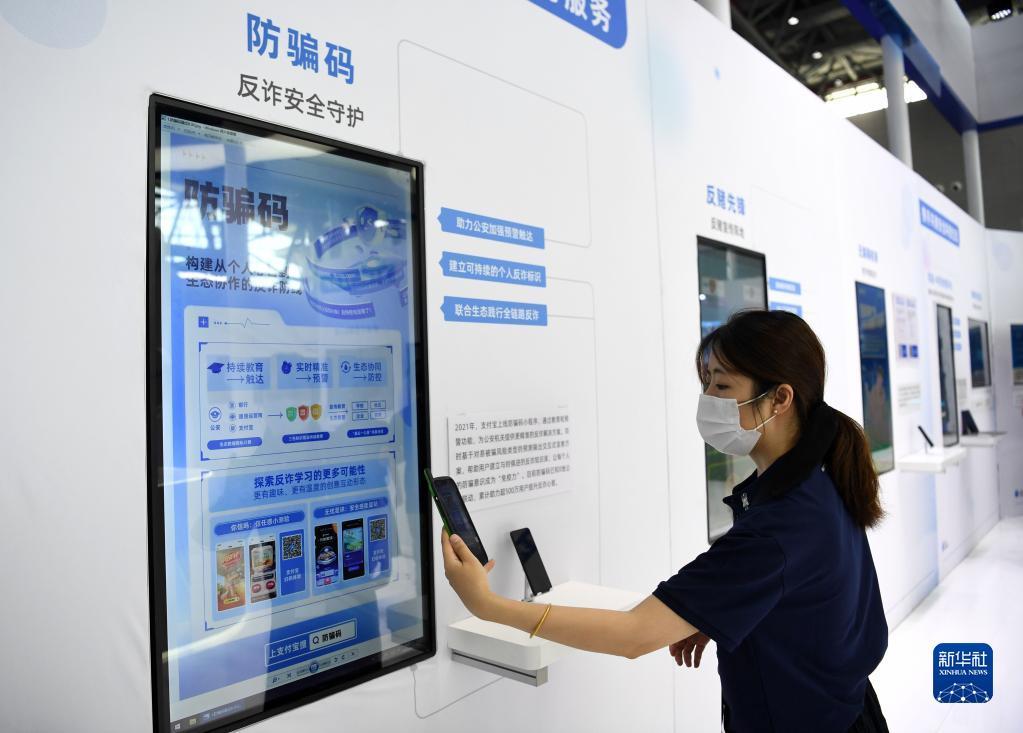 9月4日,一家參展企業代表在演示使用防騙碼。