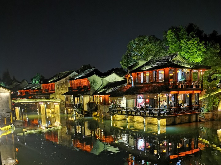 11月11日,夜晚時分的烏鎮。新華社記者 張馨文 攝