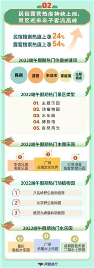 城市周邊游仍是端午假期旅游消費市場的主流。數(shù)據(jù)顯示,今年端午小長假期間,城市周邊的民宿和露營關(guān)注度持續(xù)升溫,民宿搜索熱度環(huán)比上漲24%,露營搜索熱度環(huán)比上漲54%。城市郊區(qū)的露營地和精品民宿推出了“住宿+體驗”型產(chǎn)品,將個性化的住宿與飛盤、露天電影等時尚玩法,或包粽子、做香包等傳統(tǒng)民宿相結(jié)合,給人們帶來更豐富的周邊出行體驗。除了民宿和露營外,影音房、家庭房、主題酒店也是人們假期關(guān)注的熱門住宿關(guān)鍵詞。