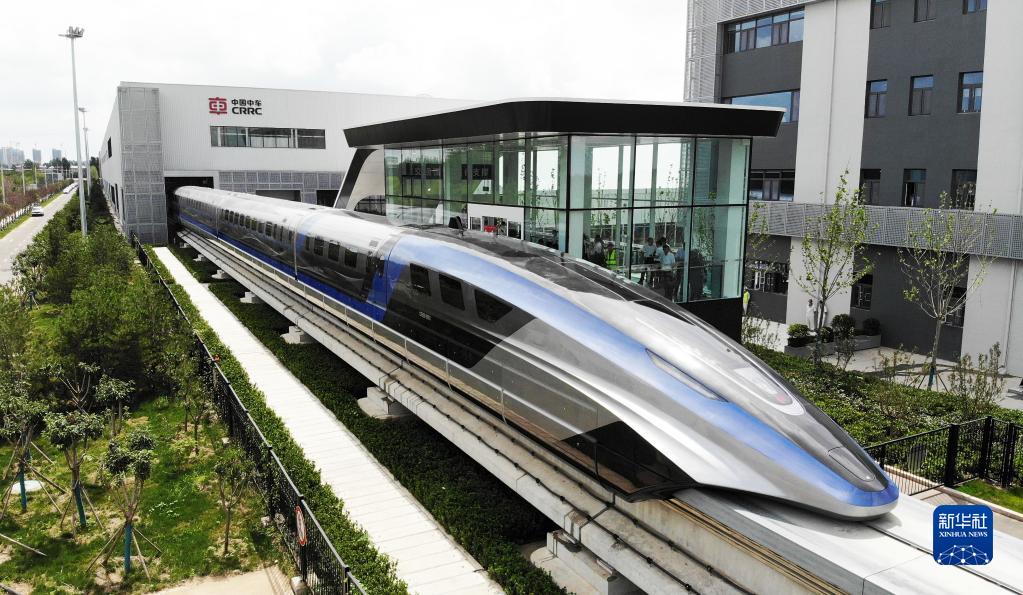 這是在山東青島拍攝的時速600公里高速磁浮交通系統(無人機照片,2021年7月20日攝)。新華社記者 李紫恒 攝