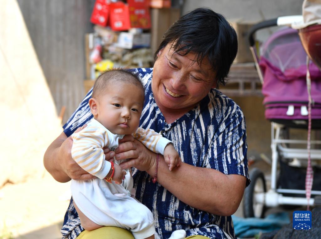 河南省尉氏縣張市鎮沈家村村民孫六在干完農活后抱起孫子(9月17日攝)。新華社記者 李嘉南 攝