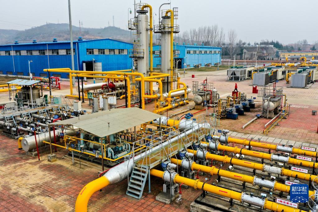 這是2020年12月8日拍攝的位于山西省晉城市沁水縣的山西藍焰煤層氣集團有限責任公司李莊首站(無人機照片)。新華社記者 曹陽 攝