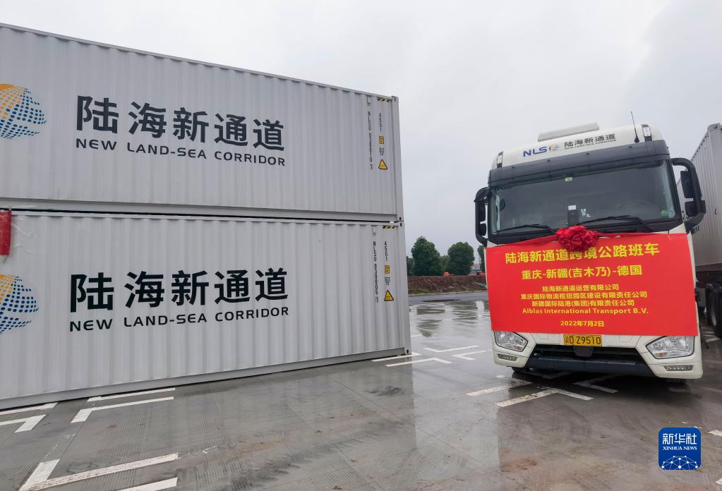 這是陸海新通道跨境公路班車(2022年7月2日攝)。新華社發(張云龍 攝)