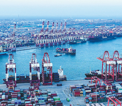 近年來,我國港口發展提速,助力外貿持續穩定增長。圖為山東港口青島港前灣集裝箱碼頭一派繁忙景象。韓加君 攝(影像中國)