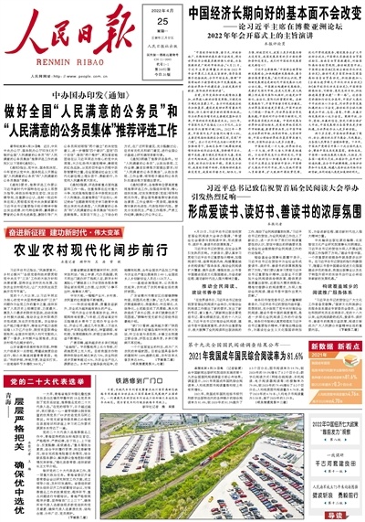 《人民日報》(2022年04月25日第01版)