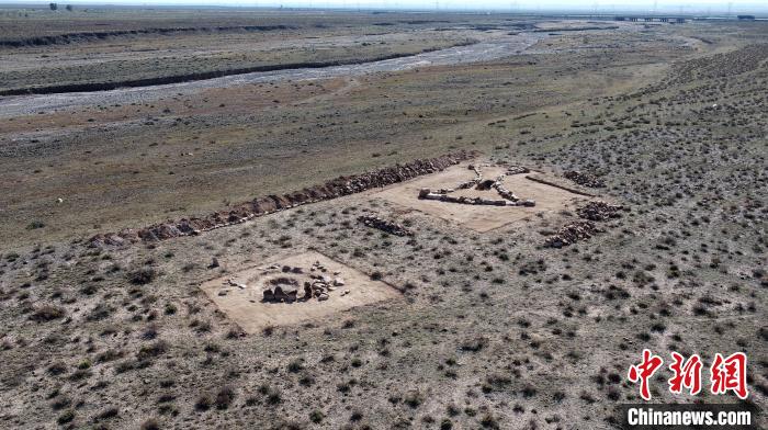 圖為亞腰形墓葬由南向北拍攝影像。內(nèi)蒙古自治區(qū)阿拉善盟文物局7日對外消息指,考古部門近日在該盟敖包圖墓葬遺址發(fā)現(xiàn)一座青銅...