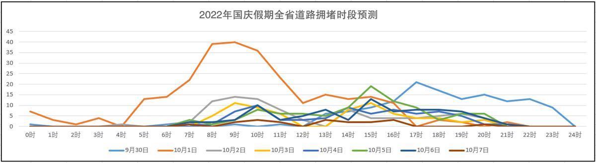 預計今年國慶假期,擁堵時段集中在8-10時、13-18時,其中10月1日8-9時擁堵程度最高。