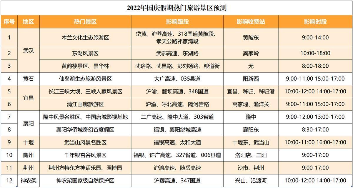 國慶假期即將到來,高速公路收費站實施7座(含7座)及以下小型客車免費通行。受惠游湖北、氣候適宜、節日團聚、疫情防控、高速公路免費通行等多種因素疊加影響,預計全省交通流量較平日有大幅增長,省內中長途、城市周邊游明顯增多、客貨運輸高位運行。9月28日,湖北交警發布出行提示,建議駕駛員錯峰避堵、安全文明駕駛。