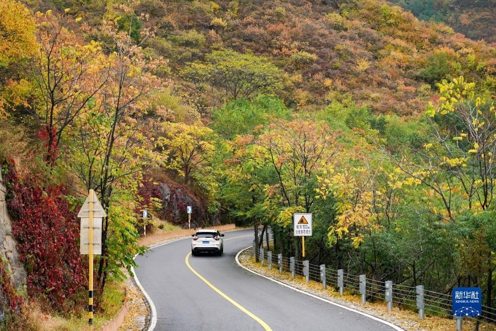 10月2日,游客駕車行駛在百花山國家級自然保護區秋景。新華社記者 彭子洋攝