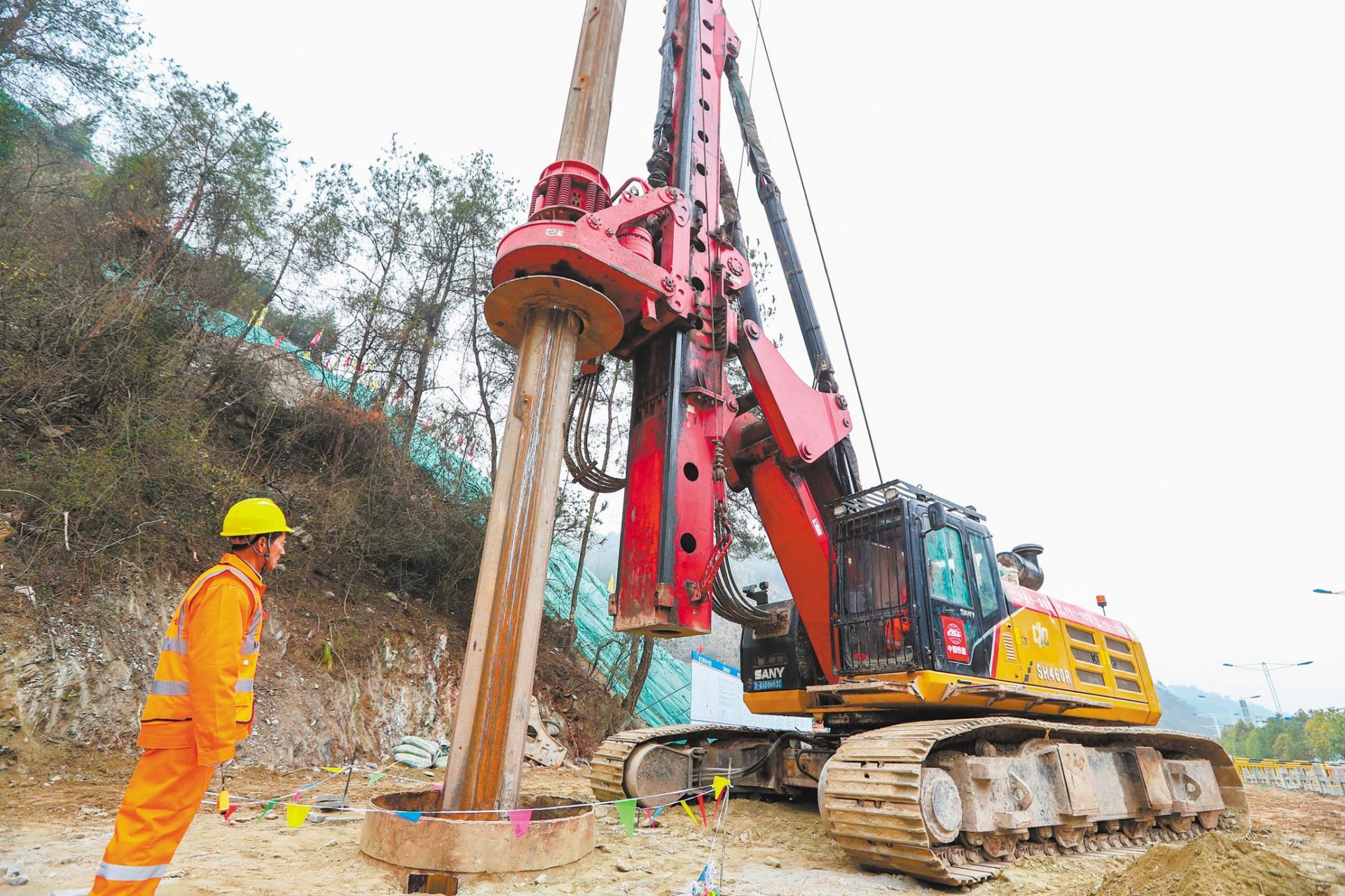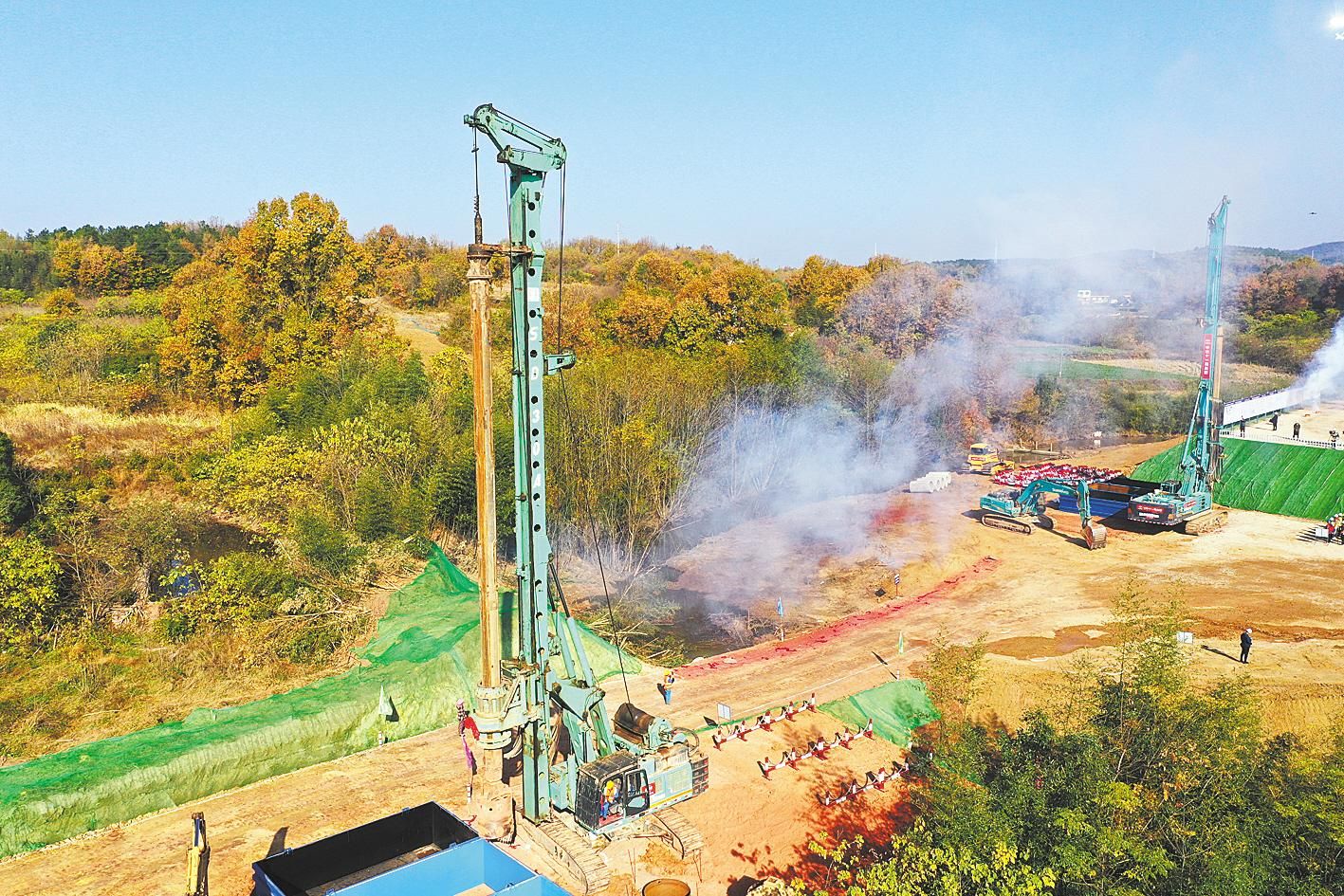 2021年11月26日上午,滬渝蓉高速鐵路(簡稱“沿江高鐵”)武宜段周家坡特大橋首根樁基順利開鉆。