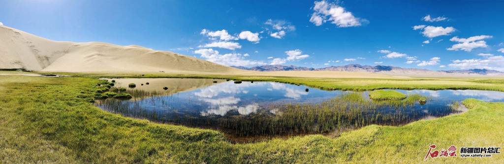 阿爾金山國家級自然保護區獨特的高原湖泊、濕地、沙山美景(2021年7月30日攝)。(攝影:王琦銘)