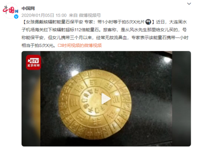 即使近些年,我們也仍能看到濫用放射性物質“保健”“保平安”,結果反受其害的新聞,比如下邊這種。