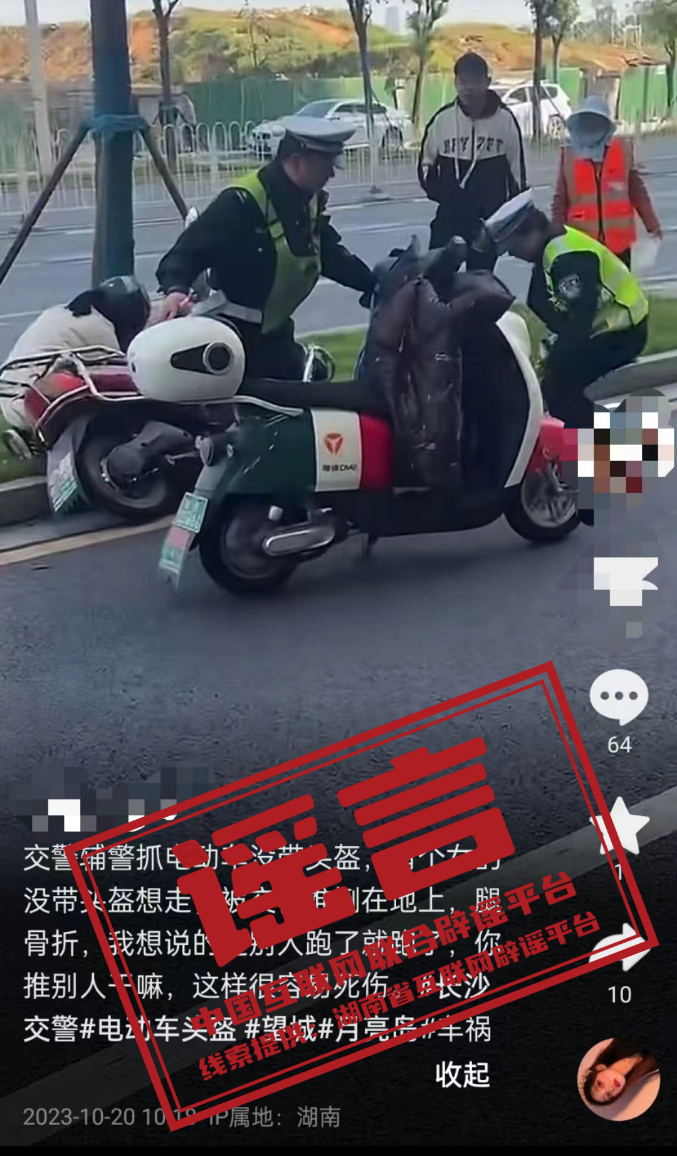 謠言:長沙交警執(zhí)法時推倒電動車?