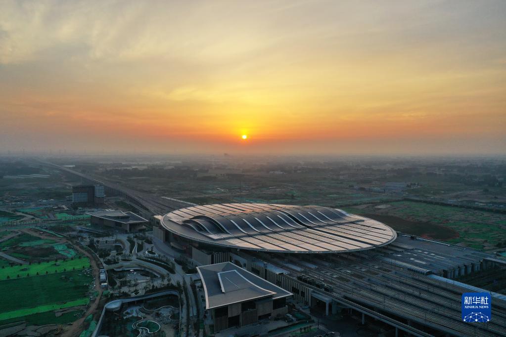這是京雄城際鐵路雄安站(2021年7月1日攝,無人機照片)。?新華社記者 牟宇 攝