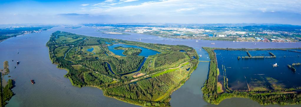 如今,從高空俯瞰,新濟洲國家濕地公園郁郁蔥蔥,宛如鑲嵌在滾滾長江上的一顆“綠寶石”。站在新濟洲對岸的江堤眺望,一條綠色生態長廊順江鋪陳。