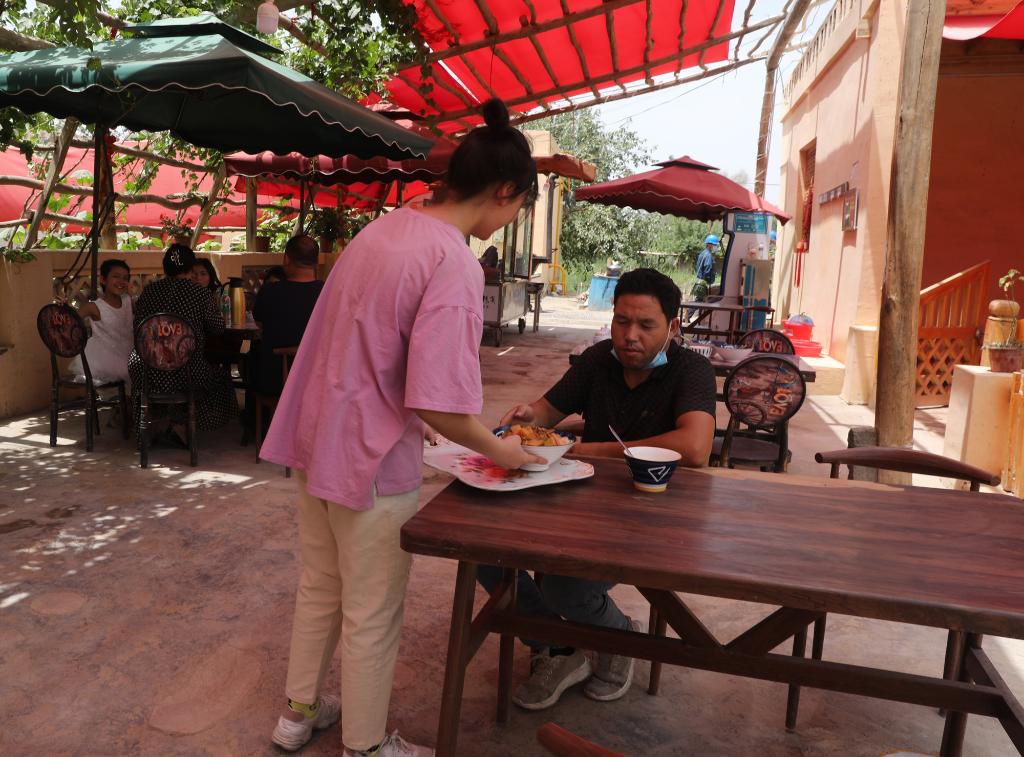 托萬特根拉村第一書記阿卜杜如斯力·圖爾蓀介紹,實現脫貧后,現在村里水、電、路、氣、通信、安居房甚至下水管網一應俱全,搞鄉村旅游的硬件條件都具備了。2020年村里只有7家商戶,去年村里開始發展旅游后,服裝店、餐館、美容店、農家樂、采摘園等已有52家商戶,30%還是吸引外地人來開的。