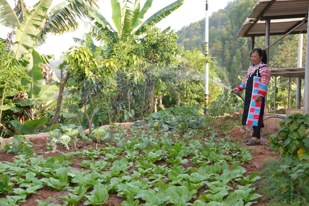 云南西盟縣勐梭鎮(zhèn)班母村群眾正在澆灌“微菜園”。(受訪對象供圖)