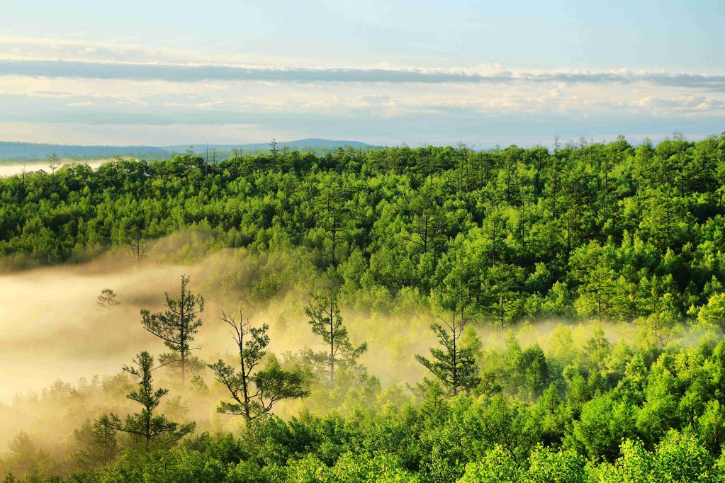 薄霧繚繞下的內蒙古大興安嶺林區。(受訪單位供圖)