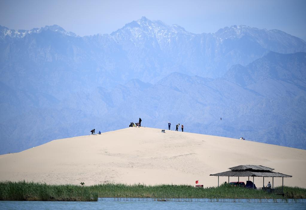 游客在沙湖景區游玩(4月30日攝)。新華社記者王鵬攝