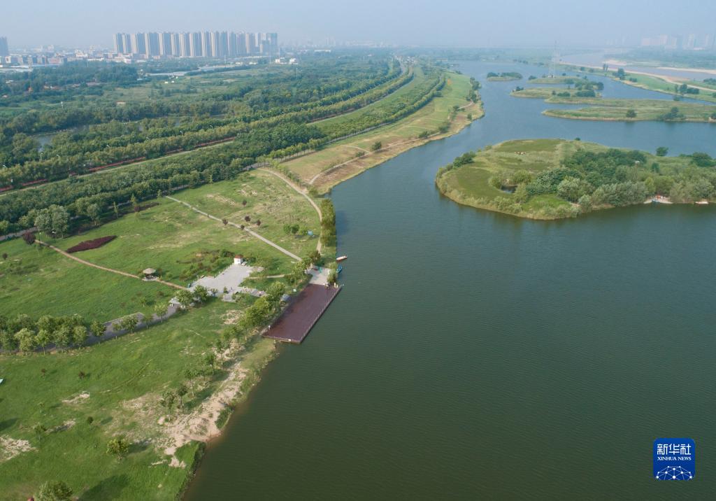 這是2022年7月31日拍攝的渭河西安段風光(無人機照片)。新華社記者 張博文 攝