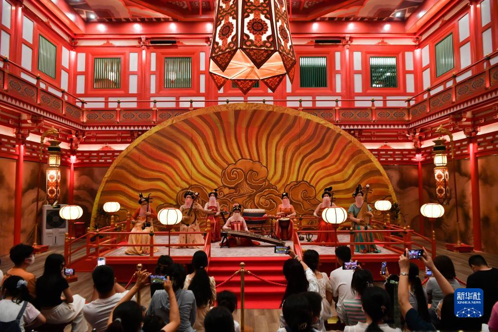 2022年7月16日,演員在西安曲江新區內的長安十二時辰主題街區表演。新華社記者 張博文 攝