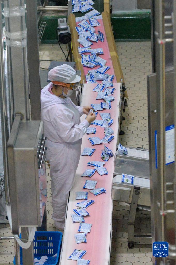 新疆天潤乳業股份有限公司的工作人員在生產線上忙碌(2020年3月1日攝)。新華社記者 丁磊 攝