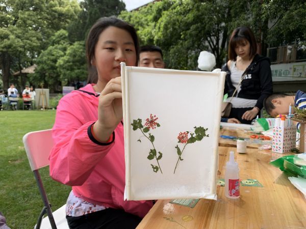 往年市民游客在武漢植物園制作花燈。 陳長麗 攝