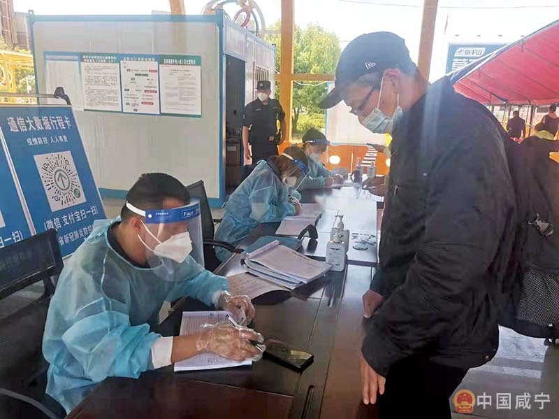 “請配合掃碼,謝謝!”4月10日上午,在京港澳高速咸寧北站防疫服務(wù)站,胸口佩戴執(zhí)法記錄儀的執(zhí)勤人員周偉正和同事一起,在逐車測量每名乘客的體溫、核驗每名乘客的健康碼和行程碼,然后按省內(nèi)及省外車輛、48小時陰性核酸結(jié)果、是否帶*號去過中高風(fēng)險地區(qū)等進(jìn)行快速甄別,再按流程要求有序進(jìn)行分流引流、登記檢測,嚴(yán)格落實“五必查”“落地檢”,現(xiàn)場井然有序。