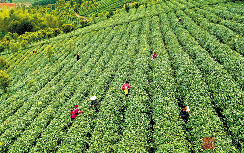 3月24日,咸安區汀泗橋鎮黃荊塘村茶園,當地農戶正在基地里搶采明前茶。