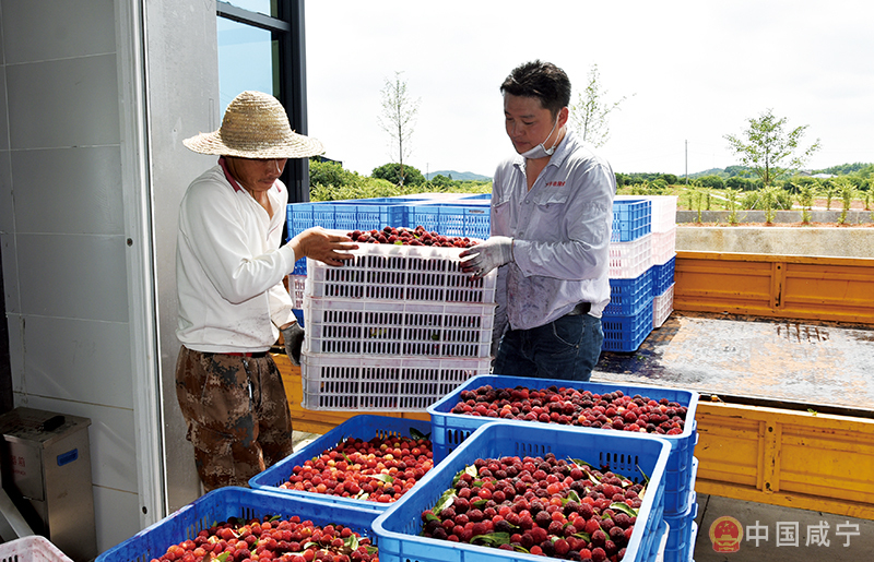 6月14日,位于余家橋鄉的湖北大豐收果業發展有限公司楊梅基地,枝頭綴滿了或鮮紅、或紫黑的楊梅。楊梅(露酒)保健酒標準化生產廠房內,制酒工人將一筐筐新鮮楊梅轉運到生產線,釀造楊梅酒。