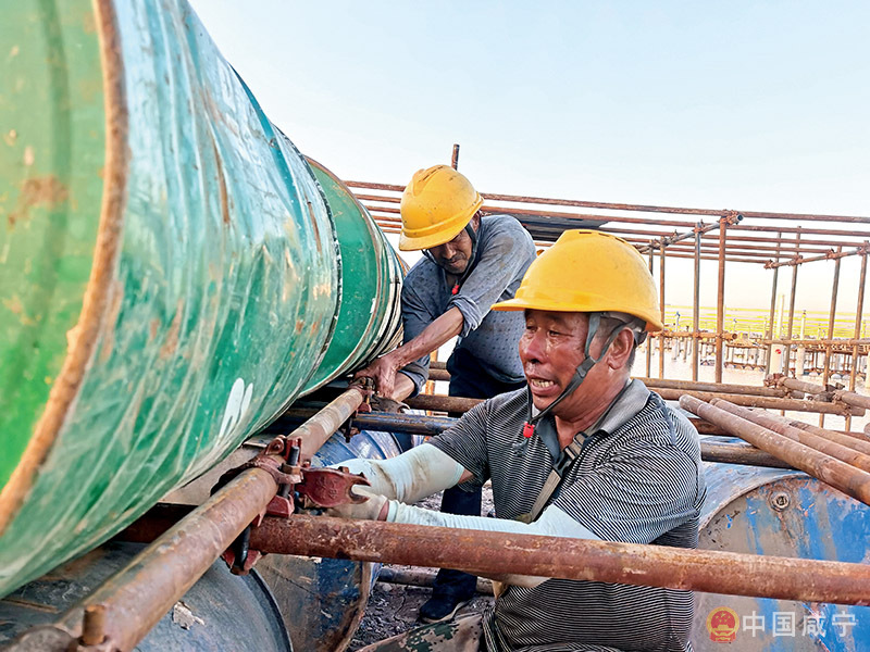華潤·赤壁長(zhǎng)江經(jīng)濟(jì)帶鄉(xiāng)村振興示范區(qū)日曜350MW漁光互補(bǔ)光伏發(fā)電項(xiàng)目建設(shè)現(xiàn)場(chǎng),工人們頂著烈日趕工期。