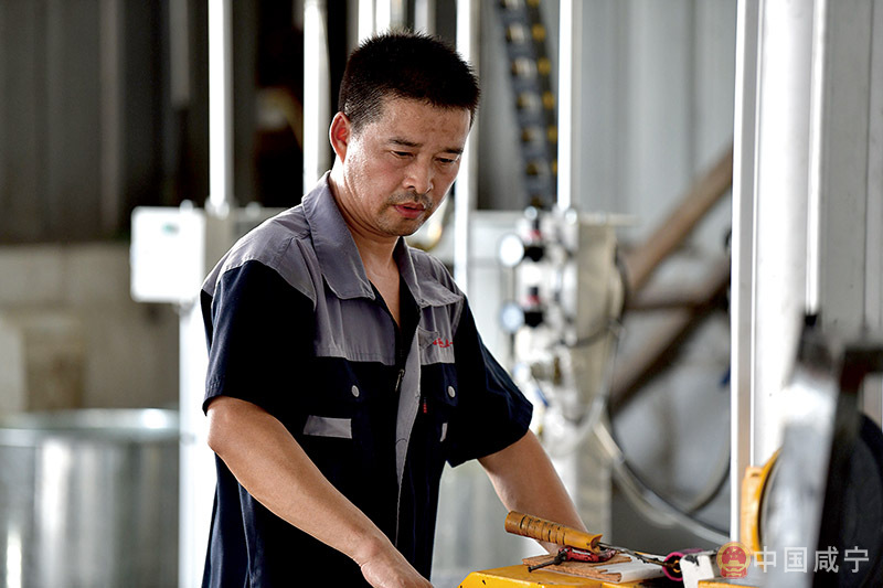 14日,赤壁市蒲圻辦事處眾一玻璃制品有限公司,工人冒著高溫忙生產(chǎn)。