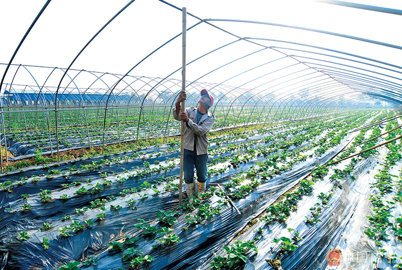 種植戶魯會(huì)斌此前在武漢種植草莓,為照顧家中老小,他返鄉(xiāng)依托沿江大道地理優(yōu)勢(shì),和兄弟共同開發(fā)草莓采摘旅游項(xiàng)目。今年,魯氏草莓基地種植奶油草莓60畝,第一批將在12月上市。