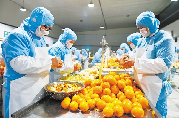 秭歸臍橙在湖北屈姑國際農業集團生產線上實現了從花到果、吃干榨盡?! 。ㄒ暯缇W 王輝富 攝)