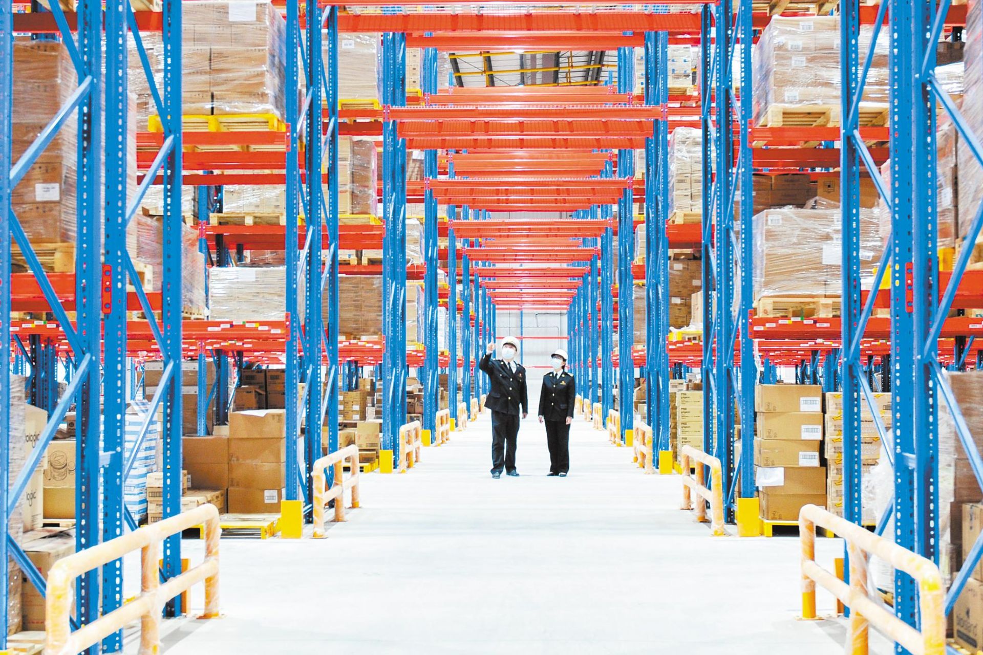 武漢海關關員在跨境電商保稅倉內進行監管作業。