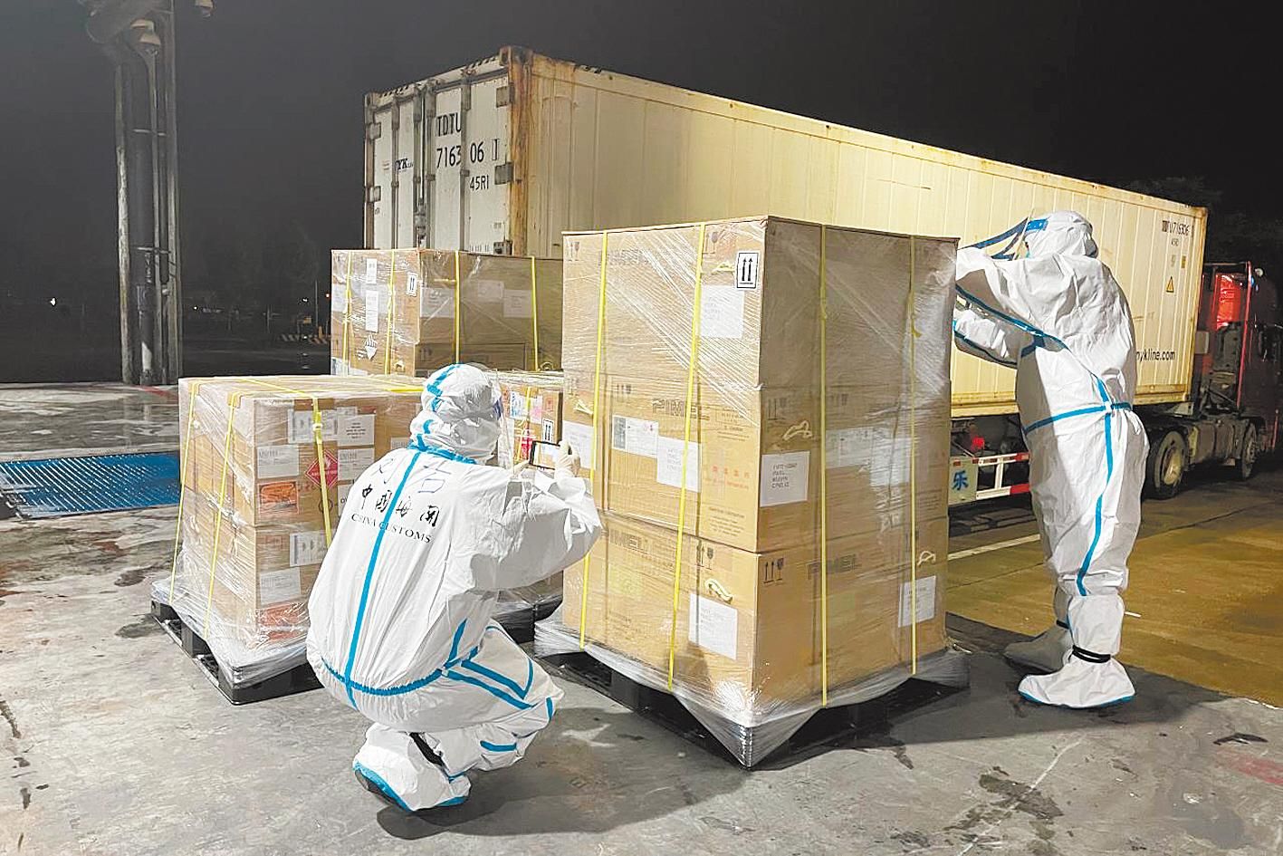 武漢海關關員對高新技術企業生產急需原料進行查驗。