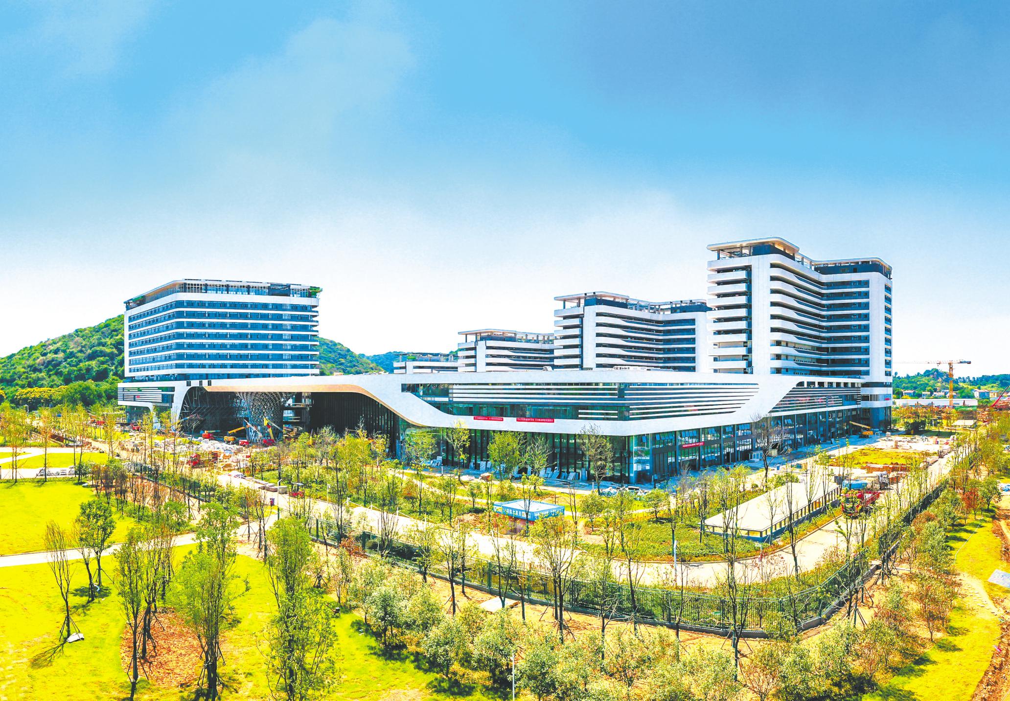 武漢規模最大的平戰結合醫院——江夏云景山醫院,總建筑面積25.2萬平方米,設計床位1000張;平時作為康養醫院運行,發生重大突發公共衛生事件時,可迅速改建為傳染病醫院。(湖北日報全媒記者 柯皓 攝)