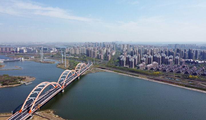 這是4月14日拍攝的中新天津生態城新貌(無人機照片)。新華社記者 趙子碩 攝
