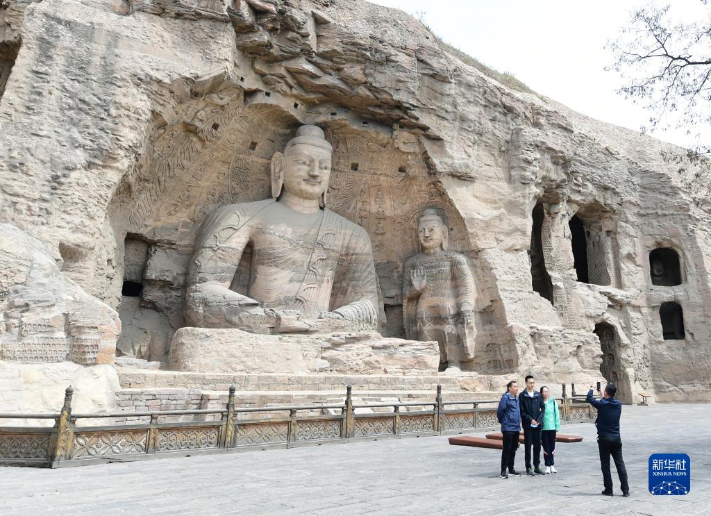 5月11日,游客在云岡石窟景區參觀。新華社記者 楊晨光 攝