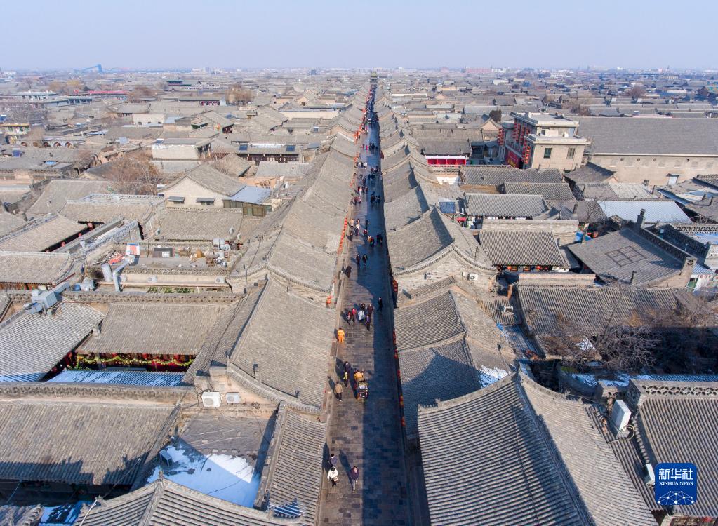 這是2月8日拍攝的平遙古城一角(無人機照片)。新華社記者 楊晨光 攝