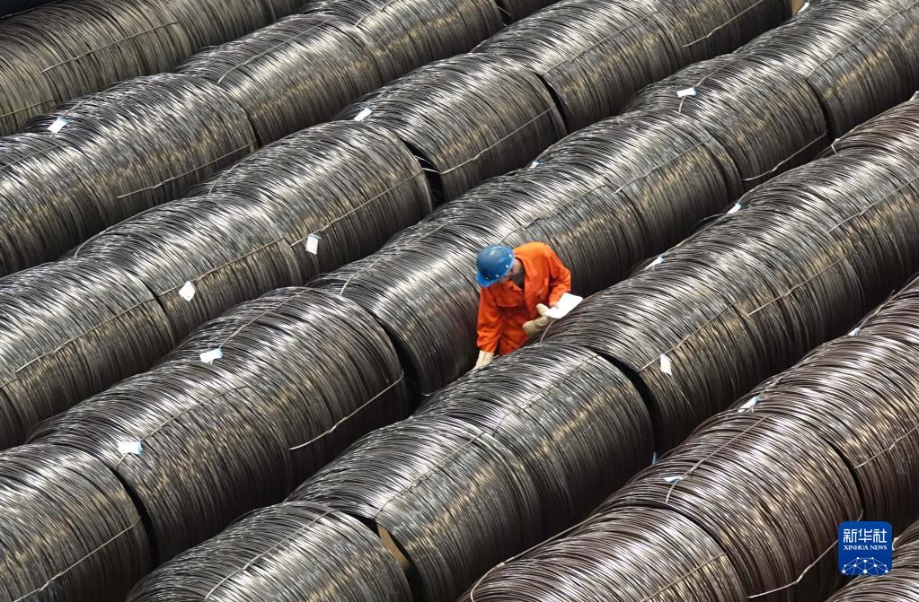 2017年5月15日,東北特鋼集團工作人員在核對入庫的合金鋼大盤重線材產品標識。新華社發(劉德斌 攝)