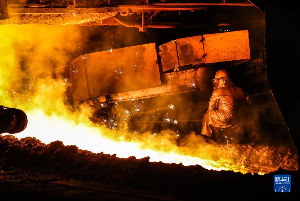 2021年7月1日,工人在鞍鋼股份煉鐵總廠新四號高爐進行生產作業。新華社記者 潘昱龍 攝