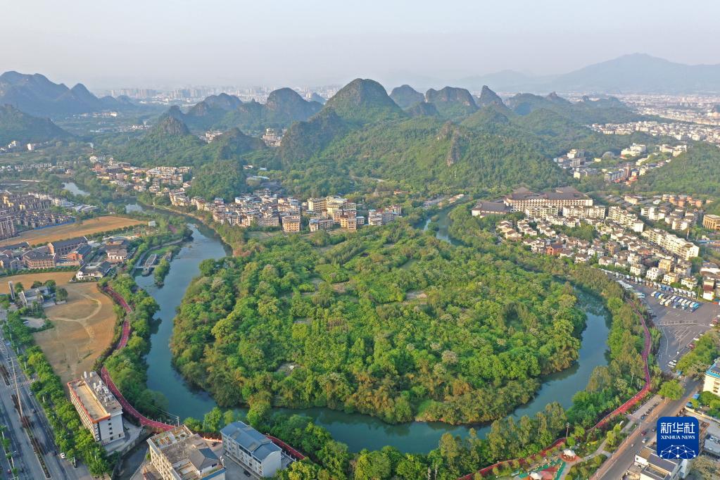 廣西桂林市城區風光(4月10日攝,無人機照片)。新華社記者 周華 攝