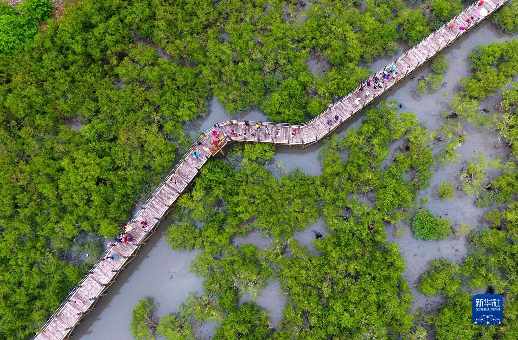 這是在廣西北海市金海灣紅樹林生態休閑區拍攝的紅樹林(2017年8月23日攝,無人機照片)。新華社記者 黃孝邦 攝
