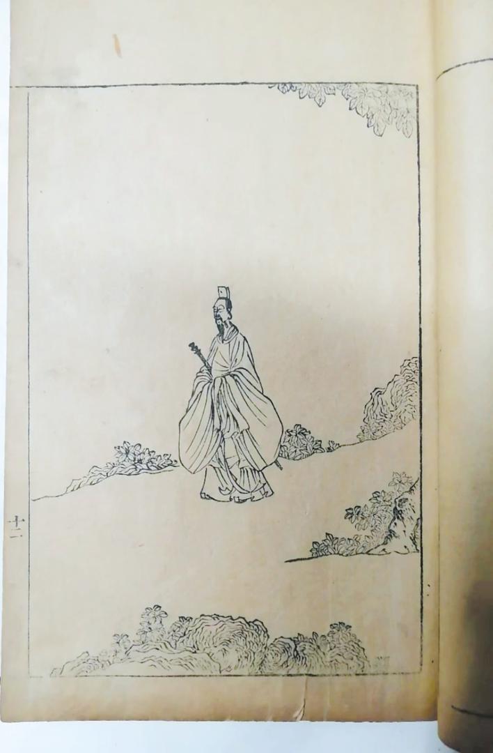 湖北省博物館藏有10余種《楚辭》類文獻(xiàn),包括東漢王逸《楚辭章句》、宋代洪興祖《楚辭補(bǔ)注》和朱熹《楚辭集注》等經(jīng)典版本。其中,明隆慶五年豫章朱多煃夫容館刻本《楚辭章句》,是一部翻宋本,屬于流傳至今的兩種明代單刻本系統(tǒng)之一,曾流傳到日本。另一部明崇禎十一年刻本《楚辭述注》,有陳洪綬所繪《九歌圖》《屈子行吟圖》作為插圖,圖中的屈原形象被奉為經(jīng)典之作,影響很大。古籍多是墨色印刷,少數(shù)為雙色和多色套印本,該館館藏清聽雨齋刻朱墨套印本《楚辭集注》,采用黑紅兩色套版印刷,朱墨燦然,賞心悅目。