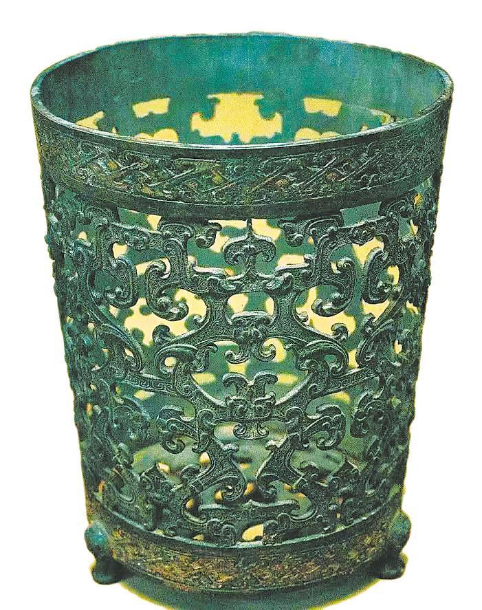 包山2號楚墓出土透雕龍紋銅熏。 (湖北省博物館藏)
