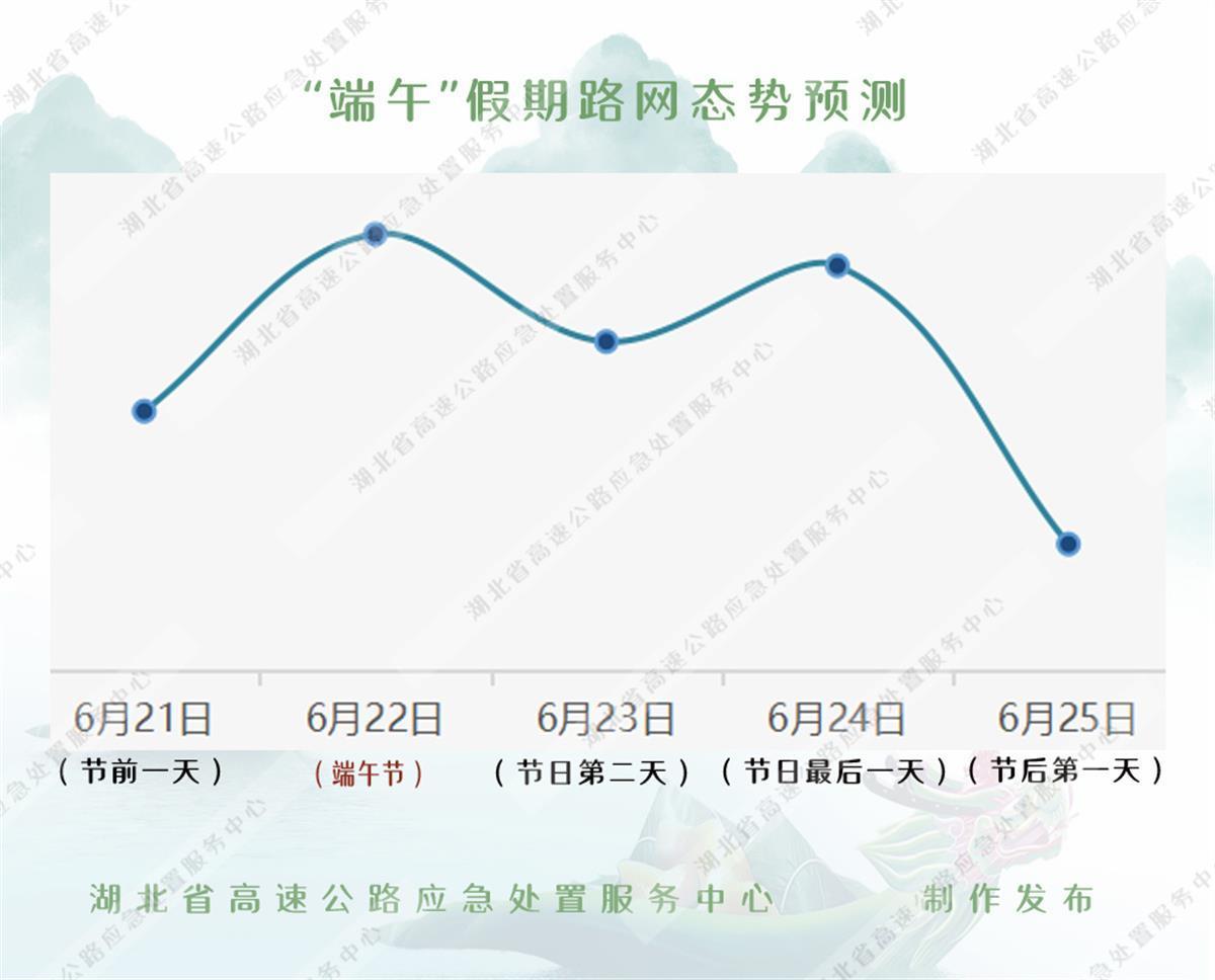 預(yù)計(jì)“端午”假期湖北省高速公路日均出口車流量較平日增長(zhǎng)約40%,較2019年、2022年同期增長(zhǎng)約25%。