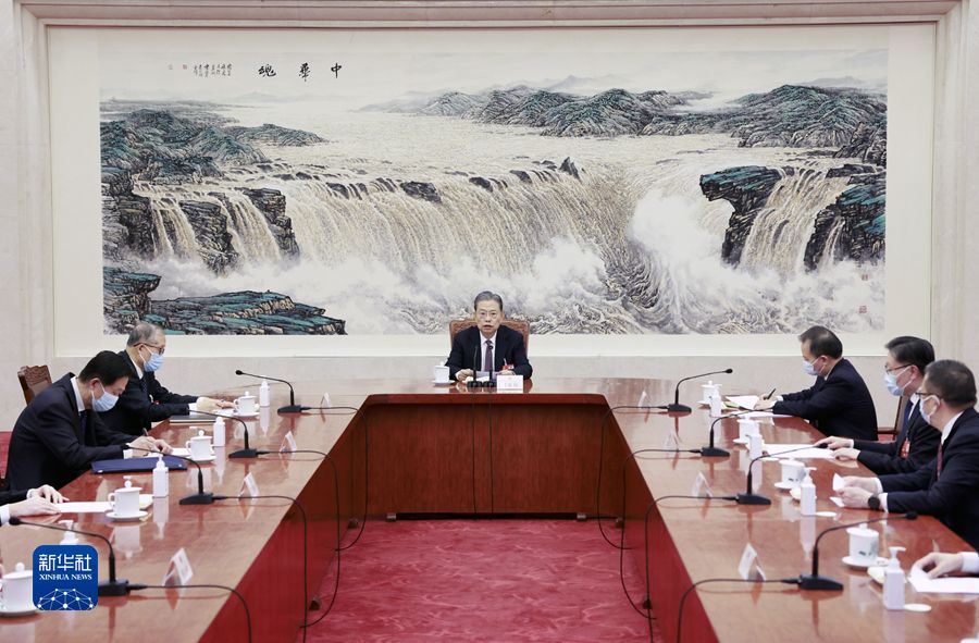 3月4日,十四屆全國人大一次會議主席團常務主席第一次會議在北京人民大會堂舉行。大會主席團常務主席趙樂際主持會議。新華社記者 丁林 攝