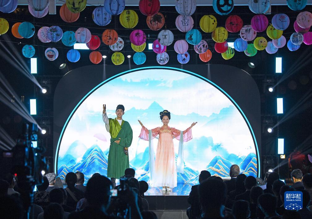 活動分為“共賞明月”“花好月圓”“與子同袍”三幕,粵劇、漢服秀等節目精彩亮相。在古箏、琵琶、簫演奏聲中,活動拉開序幕。現場打破時空阻隔,呈現穿越式古今對話。司馬相如、李白等歷史人物齊聚,共賞良辰美景,帶領嘉賓品味中秋節“人圓、月圓、家圓、國圓”的價值內涵。